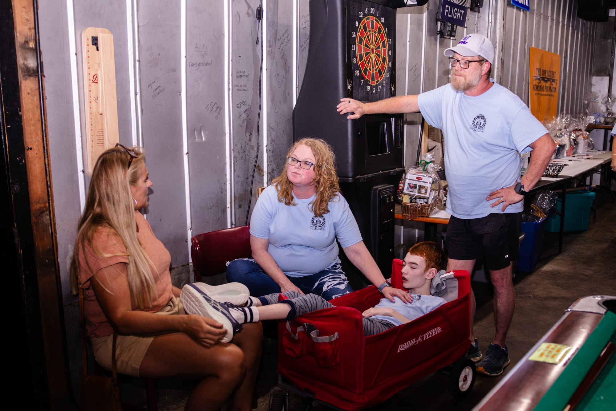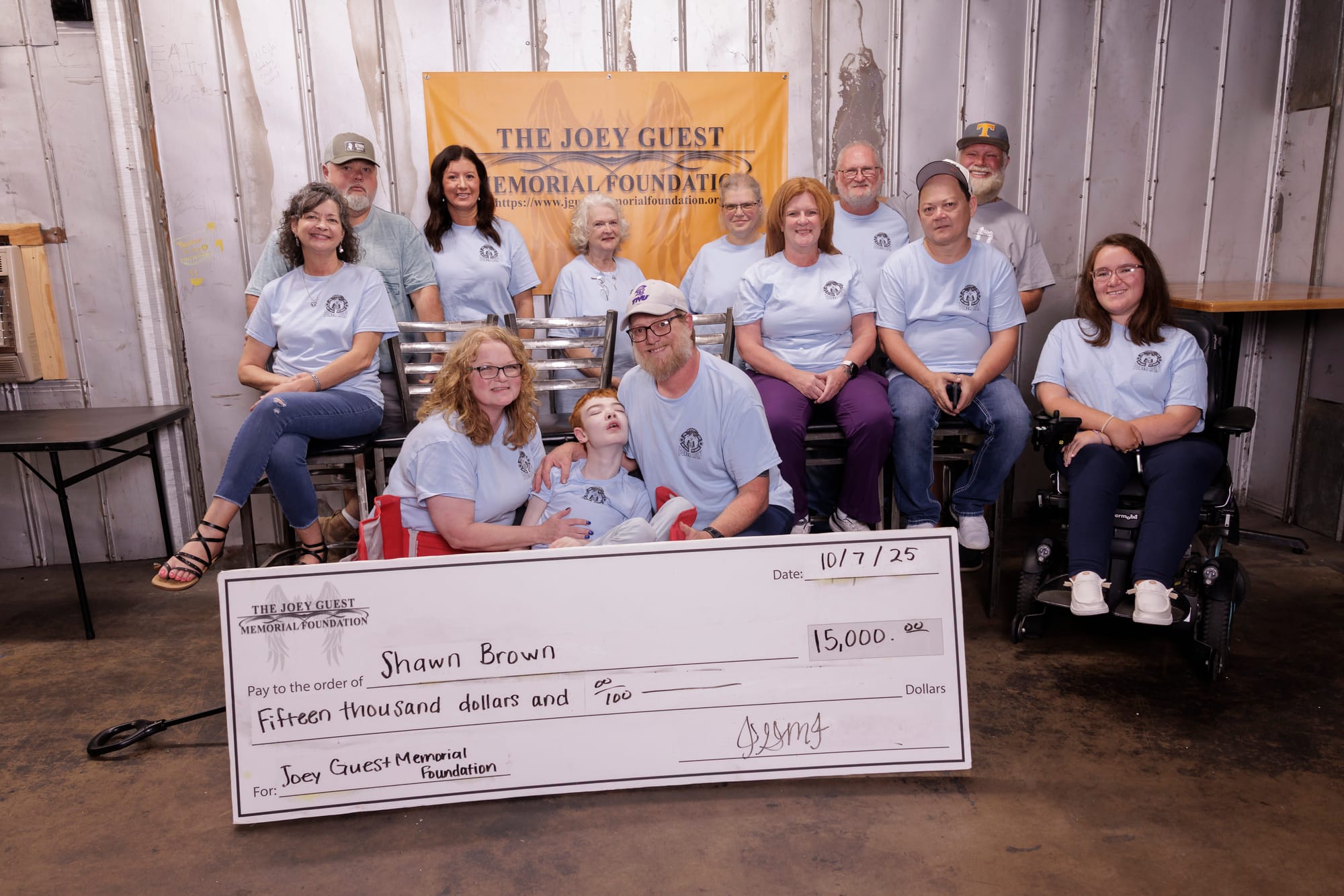 Shawn Brown was born August 31, 2007, as a reunion baby following 913th’s 2005-2006 deployment to Iraq. His parents had put off having a baby so that his mom could deploy with her unit. He was four weeks early, but at 9lbs, 2oz and 19 inches seemed healthy and strong. Two hours after birth, Shawn was cold and hard to warm up. By the next morning, Shawn could not maintain his oxygen levels and was taken by ambulance from Union City to Jackson General’s NICU. Shawn had Pulmonary hypertension with no known cause. Shawn had improved by day 5 and was off the ventilator, but tumors were visible in his tiny heart. Shawn had a brain CT and MRI, a kidney scan, and an eye exam. He was diagnosed with Tuberous Sclerosis, a genetic issue that leaves Shawn unable to make a protein that inhibits Benign Tumor growth. This causes Shawn to grow tumors in different parts of his body, to include three different types of brain tumors, two types of kidney tumors, eye tumors, and skin tumors. The original cardiac tumors were estrogen sensitive and resolved after birth. Seizures caused by intermittent electrical activity in two of the tumor types began at four months with hundreds of infantile spasms each day. These were stopped by Vigabatrin (at the time this drug was not legal in the US and had to be purchased from Canada). The second seizure type began about eight months and was unresponsive to medications. He was having, up to about 40 seizures per day. At two years old, Shawn underwent a right frontal lobe resection. This stopped the seizures for 18 days and Shawn was able to walk for the first time, three days after surgery. This surgery greatly reduced the seizures, but regardless of trying over fifteen medications and having a VNS implant, Shawn never achieved seizure control. At age ten he was diagnosed with Lennox-Gastaut Syndrome, the most severe type of childhood Epilepsy syndrome. This means Shawn has multiple seizures, of multiple types, daily. He was unresponsive to medication and unable to maintain a continuous abnormal background EEG pattern. As a result, Shawn is unable to speak, although he can understand your speech, feed himself, etc. Shawn requires total care from his parents to complete daily activities. His additional diagnoses related to TSC and LGS include Pervasive Developmental Delay and Kanner’s Syndrome/classic Autism. Shawn did not grow like other children, but with life threatening seizures this probably didn’t get as much attention as it should have. He was ultimately diagnosed with hypopituitarism and hypothyroidism. Shawn’s body cannot make the hormones he needs to grow, maintain temperature, blood sugar, or bone density. He must be given the hormones that his body needs, some orally and some through daily injections. The growth hormones, combined with the seizure medications that rob calcium from his bones, led to Shawn having osteoporosis. He’s broken his leg and arm multiple times, as well as his pelvis and ribs. Most recently, Shawn broke his right hip, requiring a plate, bolts and screws. Due to the healing hip fracture Shawn was unable to walk for some time which reduced his bone density further, causing a femur break in the same leg. This was repaired with an intramedullary nail with three extra screws and required a second surgery to remove bone fragments. Shawn can now straighten both legs and is working very hard in physical therapy both with and without his new leg braces to regain his independent ability to walk. Children with LGS and TSC together often don’t walk, but Shawn’s mobility is very important to him and so he is very determined.